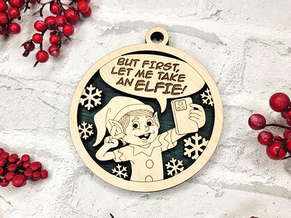 The ornament are made of two different types of wood. The top layer is a light color wood and the bottom layer is a shad darker to give it a nice contrast so the top will pop.